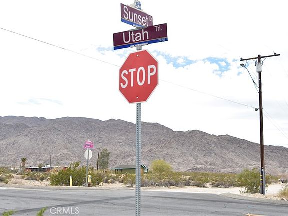 Two Parcels are being offered for sale each next to each other. Each Parcel is .72 (a bit under 3/4 quarter acre) Combined total is 1.44 acre. Just East of the City of Twentynine Palms and within the city limits, theses lots are perfect for building a home or two. Paved road frontage. Water and electric utilities are close by. Close to downtown shopping and dining. Views of the National Park to the south and easy access to the Park via Utah Trail. NOTE: Green pole lines demarcating boundaries are approximate. Do not use address or google maps GPS to locate property. To find property, please locate with APN: 0590-171-07 or APN:0590-171-08. Both properties front Utah Trl. with the nearest cross street being Sunset Dr. Address number is approximate.