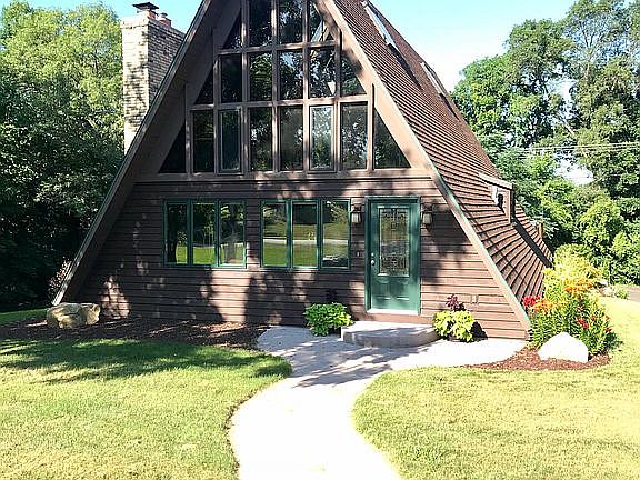 Move-in ready spacious A-frame home located on a cul-de-sac near bike/walking path to downtown Sauk City. Easy commute to Madison or Baraboo. Large master suite w/WIC & dual shower, 2nd bedroom w/WIC on main floor, and potential 3rd in finished basement. 1-full bath, 2-¾ baths. Large walk-out lower level rec-room is plumbed for wet bar. Home features soaring 24' cathedral ceilings with exposed beams, main floor laundry, 2 wood-burning fireplaces, newly renovated living room, updates throughout. Newer roof, skylights, siding, windows, furnace, landscaping, and deck. Large newly paved driveway offers ample parking with additional parking in front. 2-car insulated attached garage with nice workbench. A truly captivating one-of-a-kind home. For more info, or to schedule a showing call: 608-434-4782 or 608-445-0007.