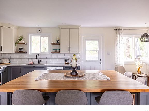 Surrounded by natureBeautiful view channelsThoughtfully designed two-storey homeCozy gas fireplaceStunning new kitchenMassive rear deckCovered lower patio