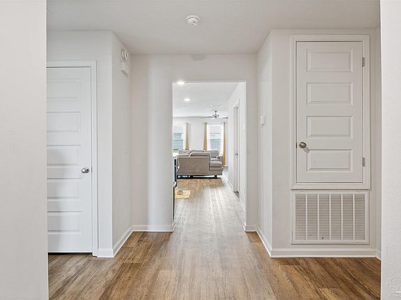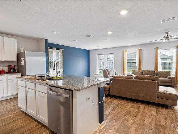 Newer construction 3 bedroom, 2 bathroom home in Beulah featuring energy-saving solar panels—enjoy the benefits of ridiculously low power bills for the life of your ownership! This contemporary open-concept floor plan offers a spacious kitchen with granite counters, stainless steel appliances, oversized corner pantry, and breakfast bar overlooking the living and dining areas. The primary suite includes a walk-in closet, double vanity, and walk-in shower. Additional features include two guest bedrooms, indoor laundry, a two-car garage with hurricane shutters, and a fenced backyard with open patio. Ideally located in the popular Beulah area—quiet yet close to shopping, parks, the new entertainment complex, and more. Community amenities include a fishing dock and dog park in this well-kept HOA neighborhood.