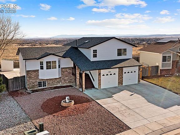 Welcome to this spacious 5-bedroom, 2-bathroom home in the highly desirable Glen at Widefield! Featuring an updated kitchen with modern finishes, brand-new carpet throughout, and ample living space, this home is move-in ready. Step outside to a massive backyard with a concrete patio, perfect for entertaining, and take in the breathtaking views of Pikes Peak. Conveniently located near schools, parks, and shopping, this home offers the perfect blend of comfort and convenience. The exterior has been recently painted, and the backyard has a spacious deck and a cover patio. New roof and windows from 2024. Don’t miss this incredible opportunity—schedule your showing today!