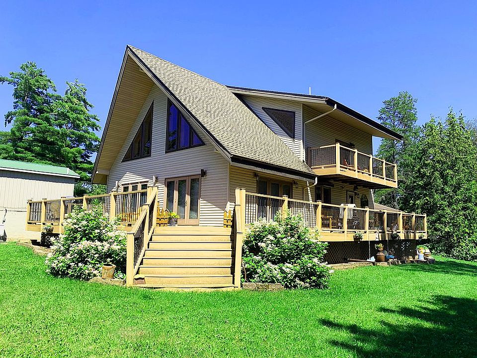 Spectacular lake home that checks all the boxes! 254 Feet of Ely Lake - Lake Shore! This location, view and beautiful home cannot be beat! Own your very own piece of heaven on this peninsula with two beaches, 39 foot FLOE dock, waterfront sauna and total privacy, yet minutes from town. This home is move in-ready and includes: