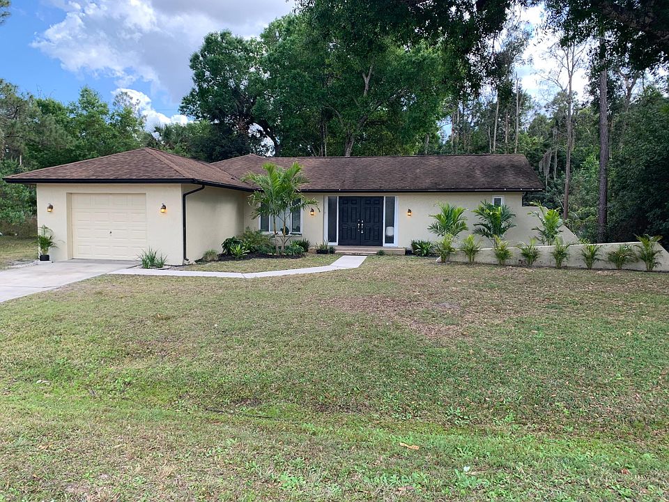 Available May-September Beautifully furnished home, Located in the highly sought after South Fort Myers/Estero area. 9 minutes to FGCU! Just remodeled this home has 4 bed/2 bath, 1 car garage, and large screened lanai. This gem is located on a half acre lot surrounded by natural preserve on 3 sides! Complete Privacy! Large yard provides plenty of room for any outdoor activities. There are no neighbors for hundreds of feet in either direction. Plenty of room for RV/Boat parking. Please text Laura Tenant responsible for lawn