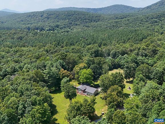 Tucked away on 10 private acres in Albemarle, this lovingly updated tri-level home offers the perfect escape from the norm. Complete with breathtaking mountain views, it's ideal for your mini farm dreams. With 4 bedrooms and 2 full baths, there’s room for everyone inside and out! The main level features gorgeous hardwood floors, soaring ceilings with exposed wood beams, and a spacious, light-filled kitchen with a walk-in pantry and built-in coffee bar. The lower level includes a cozy family room, laundry area, and generous storage space, plus walk-out access to the backyard that craves to entertain under a sky full of stars. Upstairs, the primary suite is a true retreat with a massive walk-in closet and a private balcony to see mountains in the distance. Enjoy smore's by the built-in fire pit, tend to your above-ground garden beds, or gather fresh eggs from the chicken coop in the field. HUGE Trex back deck! A charming cottage with available plumbing would be an ideal workshop or creative space. Fiber optic internet keeps you connected, while the privacy of this property gives you a sense of peace. 10 acres, a spacious home and super private is perfect for the homesteader at heart ready to be surrounded by nature.