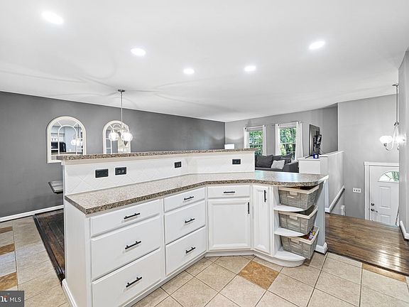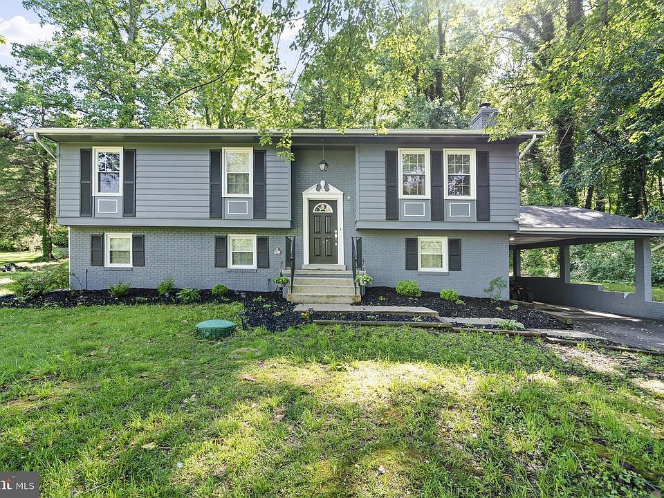 This beautifully updated split-level home sits at the end of a long driveway on a wooded 1-acre lot. With fresh paint, landscaped planting beds and a side parking pad, this property has great curb appeal. Inside, the foyer greets you with soaring ceilings and a dramatic feature wall. In the main living space, youll find an open floorplan with hardwood floors, a neutral color palette and lots of natural light. Your kitchen features granite countertops, plenty of cabinet space and a breakfast bar overlooking the dining area. This summer, youll spend a lot of time on the screened-in back porch, complete with skylights and ceiling fans. Just off the porch, the backyard includes a patio plus a huge yard thats bordered by towering trees. Back inside, the bathrooms have been updated with new tiles, vanities and fixtures. Downstairs, youll find a large family/rec room with tile floors, a fireplace and a kitchenette. This level also has a bedroom and a newly remodeled full bath perfect for in-laws or guests! The finished basement also includes new French doors that walks out to the carport.