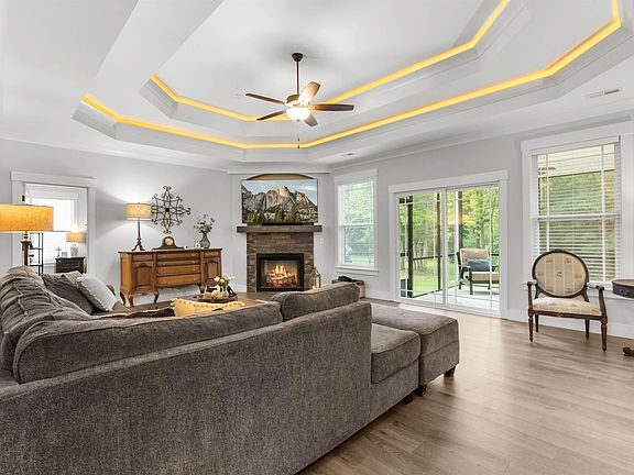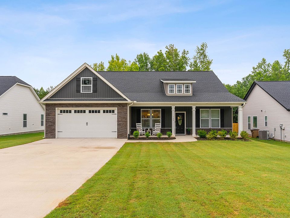 This home is better than new! What that means is that so many custom touches have been done to make this place a “home” and the entire home and property is as clean as a whistle thanks to particular sellers. You enter into a foyer with LVP floors and you immediately notice a custom wall treatment with hooks. The dining space is the first room you enter to your left, and it is open to the kitchen with a breakfast bar beside the dining room. Beautiful granite countertops, pendant lighting, an upgraded induction range, and cabinets with some pullouts can be found in this kitchen. The low profile microwave was added recently, as well! A large laundry room with custom shelving, hooks, and sink is located off of the kitchen connecting you to the garage with more custom shelving for added storage. The wide living room overlooks the backyard and has a stone corner gas log fireplace that has never been used. The double tray ceiling with accent lighting will provide the right atmosphere for relaxing and enjoying your family/friends. Sliding doors lead you to the concrete floored screen in the porch with ceiling fan to enjoy your private 1.15 acre yard The owners suite has trey ceilings with rope accent lighting. The owner's bath has a lovely, complimentary framed mirrors over the dual vanities, and a walk-in closet. Arched openings leading into four of the living spaces add a nice touch to the kitchen, dining and hallway to the secondary bedrooms. A room off of the living room with glass doors can also be used as a fourth bedroom because it has a closet and window. The secondary bath has a transom over the shower/tub combo for natural light. The best part of all is there is no Home Owner’s Association or dues here! Home is about as close to zero entry (no stairs) that you can get. Located within walking distance to the super popular and highly rated Spartanburg County District One Elementary School - Holly Springs Motlow. Home is equally located in between Greenville and Spartanburg which is perfect for couples who need to split the difference. The Campobello lifestyle can not be beat!
