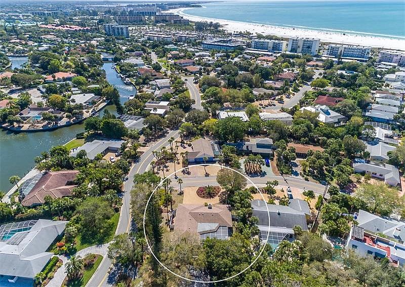 LOCATION!! One of the best on Siesta Key and only a few blocks from the #1 beach in the country! Situated on an oversized corner lot surrounded by lush Florida landscaping of bright magenta, orange and tropical greenery, this delightful home will appeal to island living at its best. A fun color palette throughout, from the moment you enter through azure blue front doors, reminiscent of the Gulf, to original white terrazzo flooring in perfect condition to the charming interior. A true 4 bedroom, split plan home with cozy wood burning fireplace, huge laundry room and charming bedrooms and baths, much with the original charm. Recent improvements include new pebbletech pool surface, landscaping, newer HVAC, water heater, washer, dryer and dishwasher. Fenced yard is perfect for kids, or for your favorite four legged friends. Within walking distance, you have the world renown Siesta Beach with its white quartz sand, volleyball, tennis, and numerous community events and just a couple blocks north the Siesta Village and its fabulous restaurants, shopping and nightlife. Could make a great rental property for those who are looking for an investment.