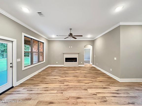 Sleek style, smart layout, and elegant touches—this home truly has everything you're looking for. New construction in Magnolia Point of Pearl featuring 4 bedrooms, 2 bathrooms, and approximately 1,826 square feet. This home includes granite countertops, luxury vinyl plank flooring throughout, an architectural shingle roof, and is fully bricked for low-maintenance living. Step into a welcoming foyer that opens into a spacious living room with an electric fireplace. The kitchen features stainless steel appliances, granite countertops, a stylish tile backsplash, and real wood custom cabinets. Two arched entryways add architectural charm — one leading from the living room into the hallway, and another leading from the kitchen into a small hall that accesses the garage, a walk-in pantry, and a laundry room with built-in cabinetry. The master suite is filled with natural light and includes a semi-vaulted ceiling with an accent detail. The private en-suite bath features a large soaking tub with tile surround, a separate shower, double vanities, and a walk-in closet with built-in shelving and hanging space on both sides. The three additional bedrooms are located on the opposite side of the home, along with a guest bath that offers double vanities and a linen closet. Out back, enjoy a covered patio with a ceiling fan and a pre-installed electrical outlet ready for a mounted TV. This lot backs up to a wooded area for added privacy. ***Builder will pay $5,000 in closing costs for the Buyer plus install a Refrigerator and Blinds for the bedroom windows.*** Magnolia Point's location also offers quick and easy access to I-20, I-55, Hwy 49, and Hwy 80. Directions to Magnolia Point: You will head South on Pearson Road and turn left onto Old Whitfield Road and go 0.8 miles and Magnolia Point will be on your left. You can also use the following address in Maps/GPS to get to the entrance of Magnolia Point - 435 Old Whitfield Road, Pearl, MS 39208.