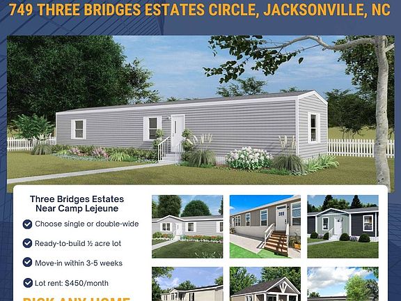 Build Your Dream Manufactured Home - Your Choice, Your Style! Spacious 1/2-acre lot available in the desirable Three Bridges Estates Community, just minutes from Camp Lejeune. This lot is ready for your brand-new manufactured home - whether you prefer a single-wide or double-wide, the choice is yours! Move in as quickly as 3-5 weeks. Lot rent is $450/month. Enjoy the freedom to design your perfect setup in a peaceful, well-kept neighborhood. Owner may consider selling the lot in approximately 4 years, though this is not guaranteed or part of the current agreement.