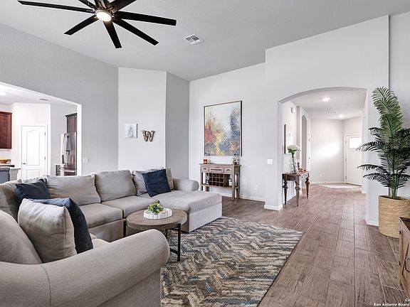 Welcome to your dream home in the heart of New Braunfels, Texas! This beautifully maintained 3-bedroom, 2-bath home is move-in ready and full of charm. Step inside to wood-look tile flooring throughout the main living areas and carpet in the bedrooms for that cozy feel. Right off the entry, you'll find a versatile flex space-perfect for a formal dining room, home office, playroom, or whatever fits your lifestyle. Down the first hallway is a dedicated guest wing with two spacious bedrooms, a full bath, and a convenient laundry room with storage. One of the standout features of this home? A hard-to-find 3-car garage offering plenty of space for vehicles, storage, or a workshop. The living room is open and bright with high ceilings and the many windows throughout. The updated kitchen is a highlight of the home -complete with granite countertops, a gas stove, stylish fixtures and hardware, and a massive island with bar seating. You'll also love the walk-in pantry and abundant cabinet space for all your storage needs. The kitchen flows into a bright dining area with a modern light fixture, that is perfect for everyday meals or hosting friends and family. Off the living room, in the back of the home, is the large primary suite. This peaceful corner of the house features a large bedroom, a dual-sink vanity with updated plumbing & light fixtures, a walk-in shower with built-in bench, a private toilet, huge walk-in closet, and a linen closet. Step outside to your covered back patio-ideal for grilling, relaxing, and enjoying the peaceful evenings. The backyard is a great size and backs up to a greenbelt and walking trail, offering both privacy and scenic views with no rear neighbors. Built in 2020 and kept in great condition, this home still feels new! You're just minutes from all the best of New Braunfels-shopping, dining, entertainment, and more!