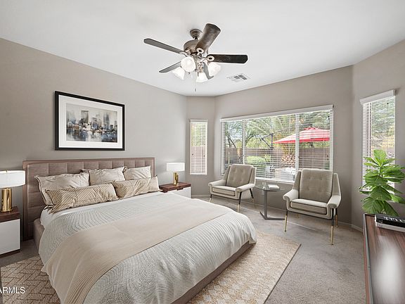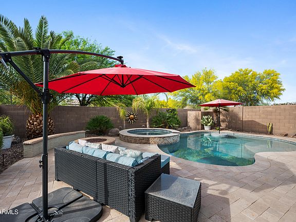 Enjoy this perfect setup for Arizona living! Experience the exceptional Anthem at Merrill Ranch lifestyle in this delightful 3-bedroom, 2-bath home! Picture yourself, your kids or grandkids enjoying this vibrant community with the water park, gym, a 43,000 sf Rec Cntr and miles of trails nearby, then retreating to your own private oasis, complete with palm trees, firepit, a relaxing Saltwater pool, hot tub, and built-in BBQ with Fridge. Inside, there is brand new carpet in the bedrooms and fresh, clean new paint in the main areas and NEW kitchen Appliances . Don't forget the 2-car garage w/epoxy floor! The property is water wise with a xeriscape low maintenance yard too. Low water bills and High entertainment await! This home is virtually staged to spark your imagination.