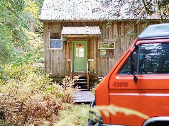 Modern Wood Cabin Retreat on the Zigzag River! Live out your wood cabin fantasy in this forest hideaway, nestled between Camp Creek and the Zigzag River. Tucked deep among the trees, this artist’s retreat offers peace and privacy - with only the sound of the creek to keep you company. Inside, knotty pine paneling and 20-foot vaulted ceilings set the stage for a wall of windows and skylights to frame the lush green forest views, while the open living and dining areas stay toasty year-round with a classic wood stove.The remodeled kitchen features a porcelain farmhouse sink, open shelving, and plenty of counter space. The spa-like bathroom includes an oversized soaking tub, dual shower heads, copper sinks, and a full-sized washer and dryer. Upstairs, two bedrooms and a bonus loft provide flexible sleeping space for seven or more guests - perfect for ski weekends, summer getaways, or hosting the fam.Outside, enjoy peaceful mornings on the deck surrounded by evergreens and the rippling sounds of Camp Creek. Explore nearby lesser-used hiking trails or cast a line in the river just steps from your door (the fishing is excellent!). Built in the 90s and thoughtfully updated since, the cabin is being sold fully furnished - just in time for the holidays and ski season. Only an hour from Portland, this design-forward retreat is minutes from ski resorts, scenic trails, and all the mountain magic Mt. Hood has to offer! Property is on leased forest land and available to cash buyers only.