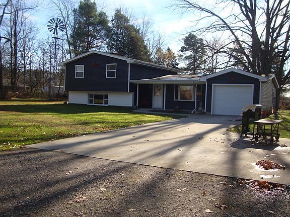 Enjoy peaceful country living with this well-maintained property featuring a 20x40 pole barn with 12 ft eaves, full electrical, cement floor, and a wood-burning stove. Additional amenities include a 12x12 storage shed, a 24x24 above-ground pool, and a stocked pond—wildlife is abundant with frequent deer and turkey sightings. Recent updates include new siding, fascia, soffits, windows, and exterior doors. Interior upgrades feature newer kitchen cabinets, countertops, backsplash, and garbage disposal, along with newer wood flooring. The full bath has been remodeled, and the home offers updated lighting, trim, interior doors, and fresh paint throughout. Main floor electric panel and insulation have been updated. Mechanical improvements include a newer well and pressure tank, new septic tank and drain field, and a boiler installed in 2019.