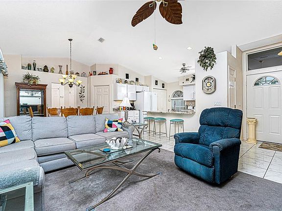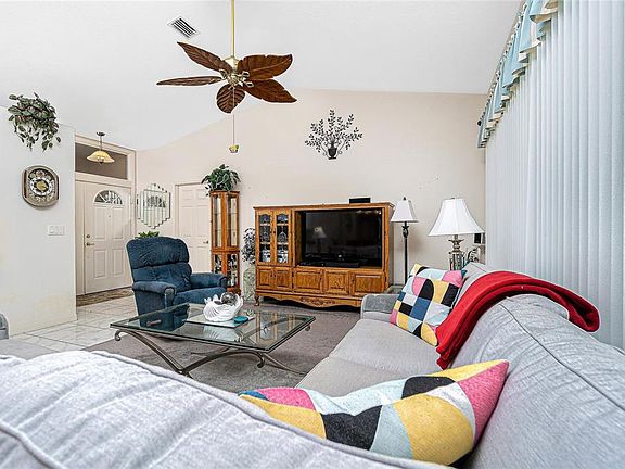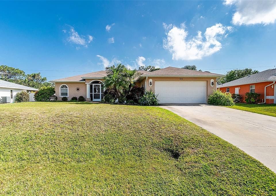 Spacious 3-bedroom, 2-bathroom, 2-car garage, pool home located in Englewood. This nicely maintained single-family home has 1,532 square feet of living space and sits on a nicely landscaped lot. The open/split floor plan greets you as you enter home through the foyer into a spacious living room with soaring ceilings. The kitchen area is open and bright with marble floor, granite counter tops and matching back-splash, breakfast bar, pantry closet, all white cabinets and appliances and is open to living room and dining area with sliders out to the lanai/pool area. The comfortable and roomy master bedroom is carpeted, tray ceiling with fan and has a large walk-in closet and two door closet. The master bath features walk-in shower, long vanity with his/her sink area, and in the center is your soaking tub. Guest bedrooms offer plenty of room for your family and friends along with access to their own full bathroom with pool access. Step outside and enjoy the outdoors in your covered/screened in lanai area with sparkling pool and privacy hedges. Home also features 2-car garage with extra storage room, oversized driveway, inside laundry room, and 8x8 storage shed in backyard. For the golfer in the family you can head over to Rotonda West which offers five golf courses operated by Rotonda Golf & Country Club. Home is also located just minutes away from Englewood and Boca Grande beaches, shopping, great restaurants, entertainment.