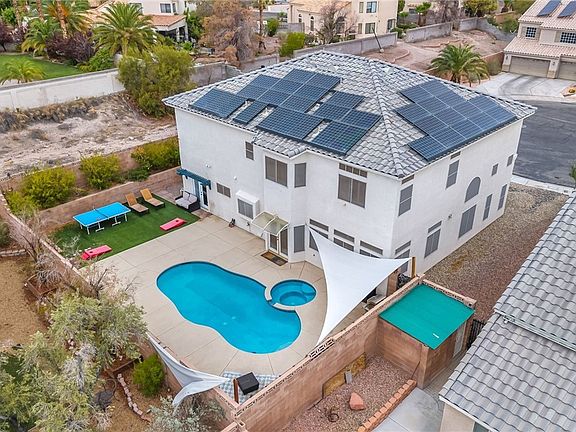 Discover this stunning 5-bedroom, 4.5-bath residence perfectly situated at the end of a peaceful cul-de-sac with no HOA. Fully furnished and move-in ready, the home showcases fresh interior and exterior paint, stylish window treatments, new Pergo flooring, and a bright, open layout designed for both everyday living and entertaining. The first-floor ensuite bedroom features a roll-in shower and direct access to the backyard retreat, where a sparkling pool and spa await. A gourmet kitchen with double ovens, gas cooktop, and walk-in pantry enhances the home’s functionality, while the spacious backyard offers lush landscaping and room for gatherings. Energy efficiency and comfort are top of mind with 60 solar panels, dual HVAC systems, and a 3-car garage equipped with a WiFi-enabled opener. This home is the perfect blend of elegance, convenience, and modern upgrades—ready for you to make it your own.