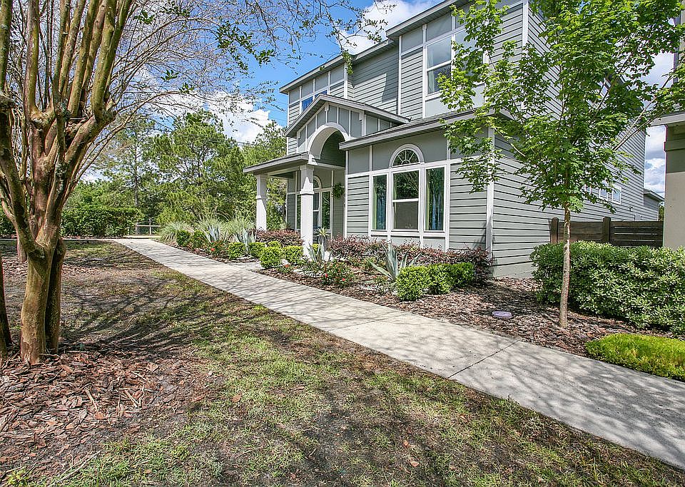 *PRICE REDUCED* This stunning home is situated on a spacious corner lot in the beautiful neighborhood of Brytan! Enjoy the gorgeous views in your spacious backyard draped with string lights! The master suite, study and half bath are on the main floor, while upstairs there are 3 huge bedrooms, each with its own large walk-in closet! The home is filled with natural light from abundant windows and soaring 22ft ceilings in the great room. Luxury touches include porcelain wood looking tile, carrara marble tile, crown molding, designer light fixtures, beautiful gourmet kitchen with SS appliances and a gas range. Energy star certified with a tankless gas water heater, vinyl low-e insulated windows, 2 zone AC system as well as low utility bills! The Brytan Community is low maintenance living and includes lawn maintenance, high speed fiber-optic internet and full cable TV service with DVR, a community clubhouse, pool, workout room, playground, and paved jogging trails ALL INCLUDED. This home is convenient to I-75, Celebration Pointe, Butler Plaza, UF/UF Health and so much more!