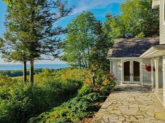 Enjoy dramatic water and sunset views from this custom home in Meadow Bluff Farm. Built by Carlson Erickson, this special home features high quality, thoughtful details throughout like a gourmet kitchen with granite island, 48-inch Viking range and walk-in pantry, a den with built-in desk and entertainment center, an apartment over the 3-stall heated garage, and a waterview flagstone patio and screen porch. A two-sided fieldstone fireplace, vaulted ceilings, and arched windows & doorways combine to provide architectural interest. Meadow Bluff Farm is a friendly, quiet neighborhood just moments south of all the bustle of downtown Egg Harbor with unassuming meadows and stack stone fences providing a pastoral backdrop to lovely custom homes.