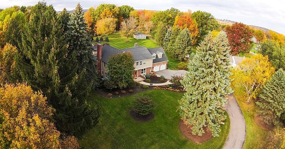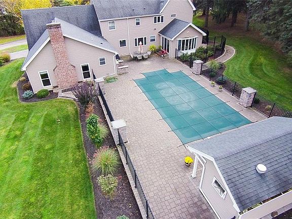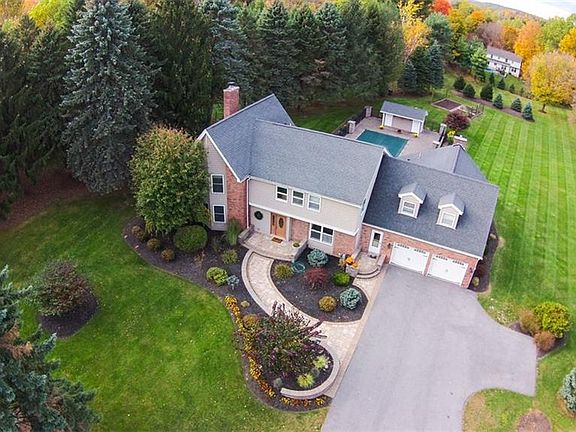 Lovely location on private, secluded 2.6 acre hilltop lot, well-off road. Tastefully renovated colonial originally built by Gary Stahl as his family residence with custom moldings, trim, detailing. All updated baths, beautiful cherry kitchen, gorgeous master bath with walk-in shower, whirlpool tub, radiant heat. Extensive professional hardscape, landscape and outdoor lighting, gunite pool. Impressive first floor office, beautifully paneled and beamed ceiling. Professionally finished basement with bulkhead access. 2nd floor laundry. 2.5 car attached garage plus 2.5 car garage/barn at rear of property. This is a unique property in top condition. Sellers have invested far above list price. Full bath next to first floor office could be private guest or in-law suite.