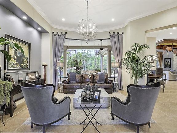 This spacious estate home has room for the whole family with its 6 Bedrooms, Den, and Bonus/Play Room, 5 full baths, 3 Car Garage, and just over 5800 Sq Ft under air! The elegance of this home starts at the wrought iron gates and flows into the raised foyer leading into the formal living & dining areas including wet bar. The Kitchen features a GE Monogram built-in refrigerator/freezer, double wall ovens, new dishwasher, 3 pantries and is open to the Family Room with zero corner sliding glass doors to the lanai. The main floor Master Suite offers oversized closets with built-in cabinets, dedicated hot water tank, and dedicated washer/dryer. Outside, you will find a resort style GAS heated pool/spa complete with sunshelf and water slide! Other fine appointments include fresh interior/exterior paint; NEW ROOF 2020; NEW Pool Pump 2020; GAS Pool Heater 2016; TWO whole house generators, and more! Conveniently located just 1 mile East of I75 and only 12 min to Mercato, 15 min to the Beach. The Club at Olde Cypress offers luxury amenities such as Grande Clubhouse with 2 Restaurants, Social Classes & Events, Pool, Gym, & Tennis Courts. Golf Memberships available but NOT MANDATORY!