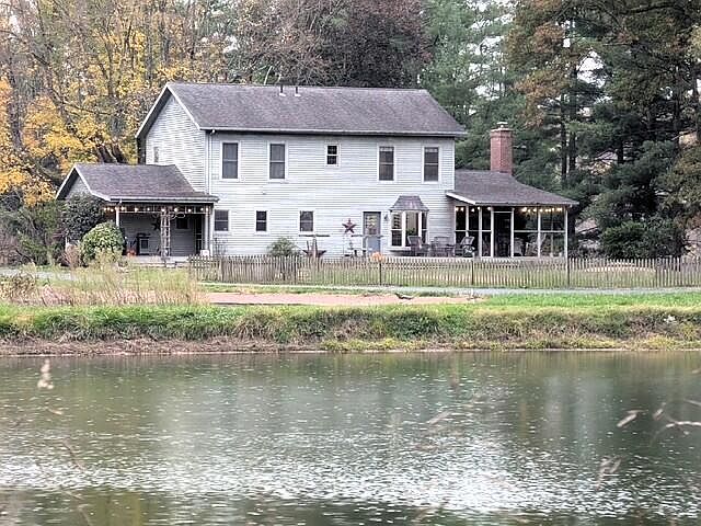 OPEN HOUSE - SUNDAY 11/23 from 1-3 pm. Experience one of Ohio's most unique properties on nearly 25 acres of natural beauty. Imagine relaxing by or throwing a fishing line into the natural spring fed pond. The woods are perfect for hunting or ATV adventures. 40 X 60 Barn w/40 yards of concrete, 220 amp, ceiling fans, string lights, & chandeliers. Venue approved or use to store your classic cars(lots of possibilities). Additional Barn and detached 2 car garage with workshop 110 amp. The Amish built home offers lots of character and charm w/ all the siding, wood trim, flooring and mantel crafted from trees harvested from the property. The gourmet kitchen offers stainless steel appliances, center island, pot rack, pantry and beautiful cabinetry. The floor plan offers a first floor primary suite, first floor laundry and first floor den (option/bedroom) The second floor has another primary suite plus 2 additional bedrooms and an office(the hallway closet could be converted to make this a bedroom) The lower level has a large finished area adding approximately 800 sq. ft. of living area. There are 3 covered porches and a deck to enjoy your private surroundings. One of a kind - must see!