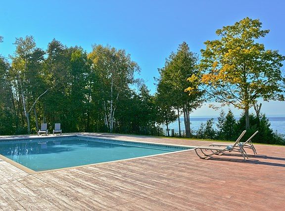 This nearly new Egg Harbor shore home is simply stunning. Gorgeous appointments indoors and out create an inviting living environment and the architectural flair and attention to detail is evident at every turn. The open concept great room is awash with windows facing out onto the spectacular pool area and the Green Bay waters beyond. The home's main floor also features a delightful first floor master suite, guest suite, family room, amazing gourmet kitchen and large dining space. Upstairs are two more waterview bedroom suites, an office and additional bath. There are also three fireplaces, wine bar, a fantastic laundry, great dog-friendly features, attached and detached garages, geo-thermal heating, back-up generator, and so, so much more!