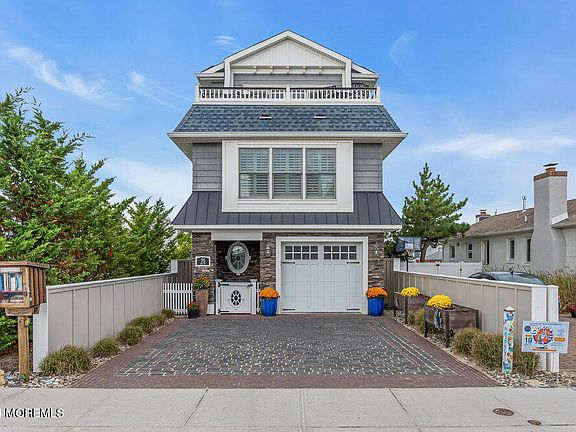 Terrific 1st Avenue location with unobstructed ocean views/sunrises. Built in 2014, this home offers the best in Jersey Shore Living. Check the surf right from your deck or walk across the street to the beach! This shore home features 3 bedrooms, 2.5 baths with reverse living to enhance the enjoyment of the views. An elevator takes you to the top floor where you will find the high end kitchen, dining/family room that opens to large deck, spacious laundry/office room and half bath. On the middle level you will find a magnificent master suite with custom designed walk-in closet and master bath. On the same level bedrooms 2 and 3 share a Jack and Jill bath. The first floor/entry offers a nice foyer with access to the rear outdoor venue, two storage closets and an oversized garage.The rear yard features a covered kitchenette with a refrigerator, sink and ice maker. There are multiple seating areas, one with a fountain another with outdoor gas firepit. The bar area has a 5 stool bar, TV, prep area, warming drawer, and a gas fired grill, all under a pergola. The perennials are serviced by an irrigation system. The outdoor concrete bar, kitchen and fireplace have a natural wood appearance and the decking is Ipe wood. Luxury brands are everywhere: Hunter Douglas, G.E. Monogram Series, Lynx and Sonos Entertainment.
