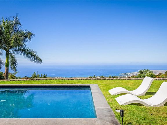 Experience luxury living in this fully furnished, newer-built haven with expansive and breathtaking ocean views, nestled in the heart of Holualoa. Located within an exclusive gated community of just four luxury residences, this dream home is perched on a sprawling one-acre lot above Kailua-Kona, offering stunning coastal views from nearly every room. Revel in serene mornings and picturesque sunsets.<br><br>This exquisite retreat spans over 3,000 Sq Ft under roof, providing ample space for relaxation and comfort. The open contemporary floor plan seamlessly connects the kitchen, living, dining, and lanai areas, creating an ideal setting for entertaining guests or cherished family gatherings.<br>The home offers unique features, including hand-scraped Acacia wood and tile floors, high vaulted ceilings accented with grasscloth, and rich mahogany wood trim. The La Cantina 14-foot accordion doors and exquisite lighting throughout enhance the home's elegance. In the kitchen, enjoy the sophistication of custom Bellmont cabinets, designer natural stone countertops, Hansgrohe plumbing fixtures, and GE Profile Café black matte appliances, remote blinds installed throughout. Sustainable features like 11,000 kw solar, lithium ion battery backup, a solar-heated saltwater pool, solar hot water heater, and meticulously landscaped surroundings complete this stunning property. <br>Holualoa town, known for its charming and artsy atmosphere on the slopes of Hualalai, the home offers a cooler climate while being just a 15-minute drive to Kailua town.<br>Perched beautiful agricultural land, the property offers numerous possibilities, including ample space for potential additional development. The tropical landscaped yard features up-lighting on majestic Royal Palms, and an array of fruit-bearing trees such as apple-banana, tangerine, avocado, lemon, and macadamia nut. Enjoy the expansive lawn accentuated with lava pavers and the many benefits of a fully fenced one-acre yard.