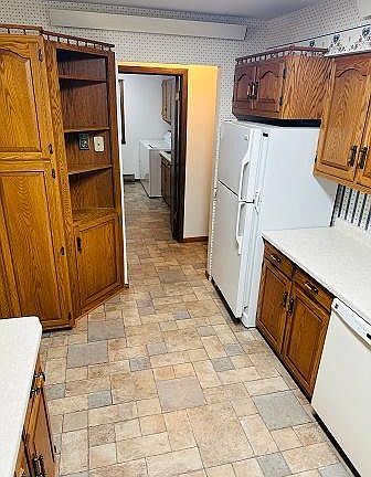 This rambler style, 2 bd, 2 bath home has an attached 2-stall garage. It also has a storage shed in the backyard, along with some mature trees separating the back lot line to the West. A few blocks from the school, pool, park and skate park. Downtown is within walking distance. Unfinished basement with an egress window for a possible 3rd bedroom.