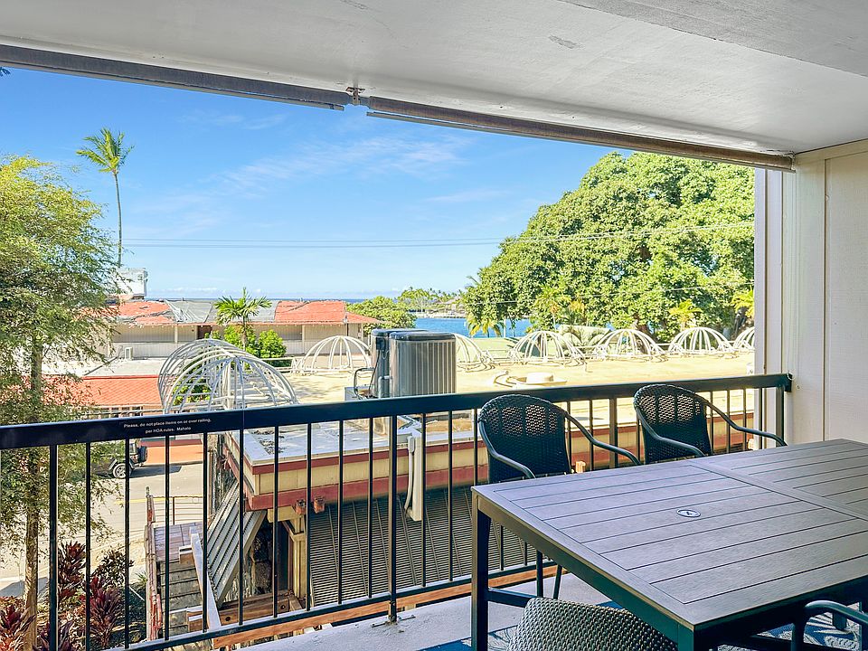 This centrally located, 2-bedroom corner unit features tasteful updates throughout and a large wraparound lanai with views of Kailua Pier & Hualalai.