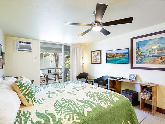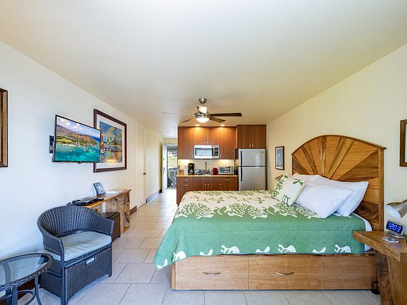 Fully-furnished studio condo at the Kona Islander Inn with all utilities included! Great setup for this studio unit, making the most of the living area.