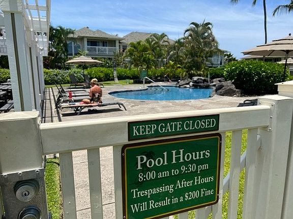 Kona Searidge is a gated beautiful tropical landscaped condo complex located on alii drive just a couple of miles to magic sands beach. Kona Searidge is also close to shopping, kailua bay and historic kailua village! This spacious 906 sq. ft. unit boasts 9 foot ceilings, granite counter tops in the kitchen and bathrooms. 2 AC units in bedrooms. This complex is very well kept and built in 2001. A private back lanai is a peaceful place to entertain guests if you like. There is a storage closet out there as well. Ceiling fans in unit. Stacked washer/dryer in unit. This complex has a nice lagoon style pool, hot tub, fitness center and bbqs. The resident manager office is located near the pool as well. Currently the unit is rented month to month and is NOT being sold furnished. * 1 indoor cat or bird allowed with approval. NO DOGS * Low HOA dues of only $418! includes: Water Trash Sewer Pool and exterior maintenance Landscape maintenance