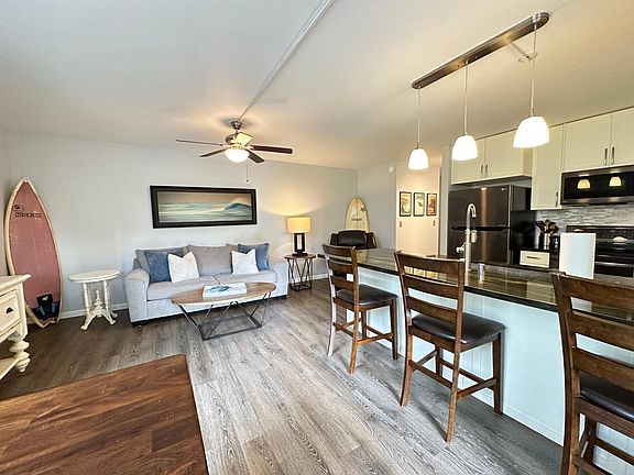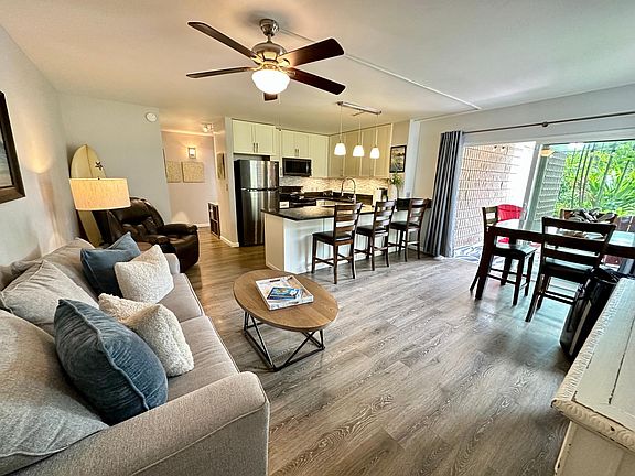 Recently remodeled and open concept ground floor unit in a quiet and private corner of Ali'i Villas. Everything was completely redone with new appliances and fixtures (kitchen, bathroom, bedroom, closet, flooring, etc.). Beautiful garden view and quick access to yard space. Unit is coming fully furnished/decorated with nice furniture, all dishes and pots/pans.