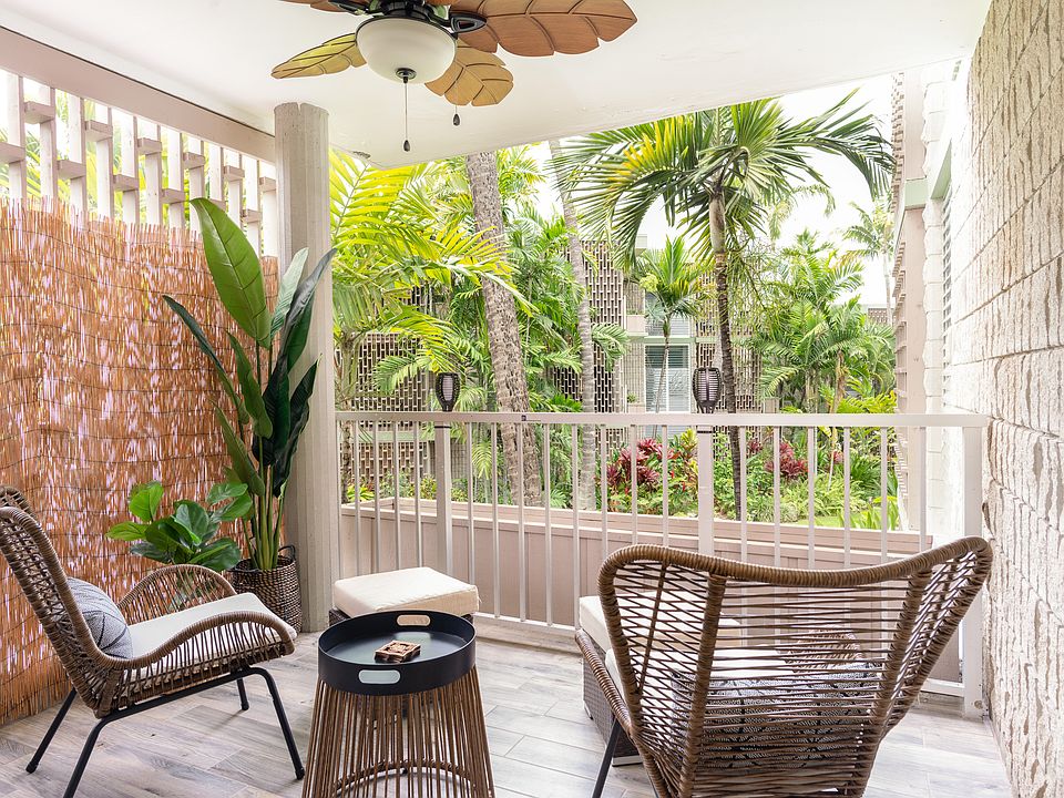Welcome to Ali‘i Villas #201 — a one-bedroom, one-bath condominium in a desirable oceanfront community along Ali‘i Drive. This residence features a well-designed kitchen with granite countertops and stainless steel appliances, an open living area, and a private lanai overlooking lush tropical landscaping.