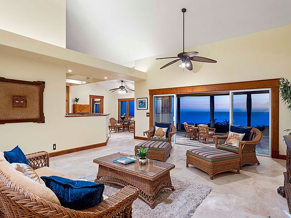 Nestled on three acres just above Kona town, yet minutes away, this extraordinary home sits within a small luxury subdivision with an HOA, yet this parcel is not subject to its restrictions. AG zoning allows for livestock, and potential for a riding arena or barn. Its location showcases unobstructed 180° ocean views, among the best on the island! Beautifully landscaped grounds compliment the unique décor throughout.<br><br>You’re greeted with expansive space and views upon entry. The kitchen boasts custom maple and mango cabinets, granite countertops, teak molding, and walk-in pantry. An adjacent dining area presents a stunning ocean panorama. Jalousie windows invite refreshing breezes. Vaulted ceilings in the living room, dining area, and kitchen enhance the spaciousness. On the opposite side, a junior ensuite features a 3/4 bath and a sliding glass door to the lanai, providing more ocean views. Additionally, there is a third bedroom and guest bathroom.<br><br>The oversized primary ensuite has its own interior sitting area and a redwood lanai, offering relaxing mornings. Its bathroom features a spa tub, stone-tiled shower, and cedar-lined walk-in closet with teak and maple shelving.<br><br>The spacious lanai segues to a cabana-like lounge area with a fridge, sink, half bath, outdoor shower, and hot tub with island views.<br><br>Enjoy the tropical abundance of this property, featuring ginger, lychee, papayas, mango, avocado, fig, bananas, raspberries, lemons, persimmon, dragon fruit, kukui nut, lilikoi, egg fruit, strawberries, coffee, peach tree, mac nut, and more!<br><br>An added out-building, creatively crafted from a shipping container with an exterior stone facade, has a fully finished interior and provides versatility as a creative space. A separate huge workshop and oversized garage provide ample room for storage and projects.<br><br>With lots of room for entertaining and many more features, this property is the Hawaiian lifestyle dream come true, a must-see!