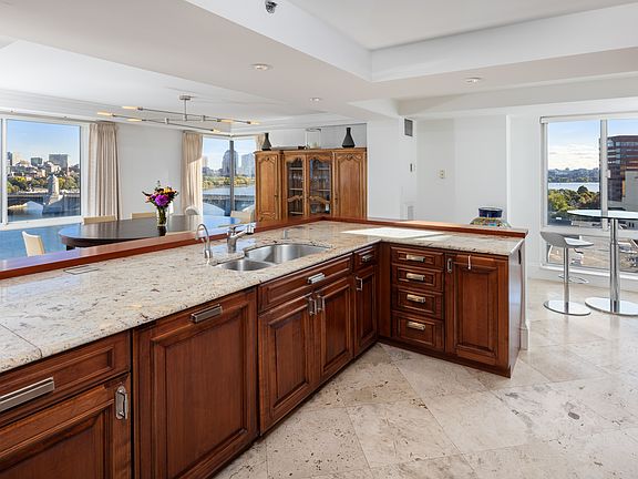 The Esplanade one of kind magnificent 3 bedroom furnished rental with direct water views of the Charles River Boston Skyline. Beautiful primary Bedroom offers a large ensuite marble bathroom. Second bedroom offers an ensuite bathroom. The third bedroom is ideal for an office offering a built-in murphy bed. This modern unit offers an open kitchen any many custom built details throughout. Parking for 3 cars are included. The Esplanade provides 24 hour concierge service, an indoor lap pool and fitness center. Designed by renowned architect Moshe Safdie, The Esplanade is prominent structure on the Charles River. Conveniently located under 6 miles for, Logan Airport. Next to Kendall Square, it lies within walking distance of high tech and pharmaceutical headquarters, MIT, a shopping mall, restaurants, cafes and more.