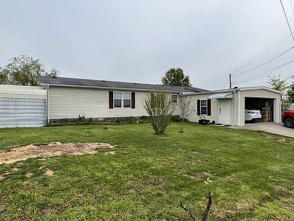 BEAUTIFUL VIEW with country living! This charming, double wide manufactured home has 3 bedrooms, 2 full bathrooms, large kitchen, den, living room, laundry room, and bonus room, being just under 1,800SF. The home has central heat and air that is 1 year old. All appliances stay with the home, including the washer and dryer. There is also a storm shelter located on the property, along with a 1 car garage, carport, and small storage building, all sitting on a large lot.