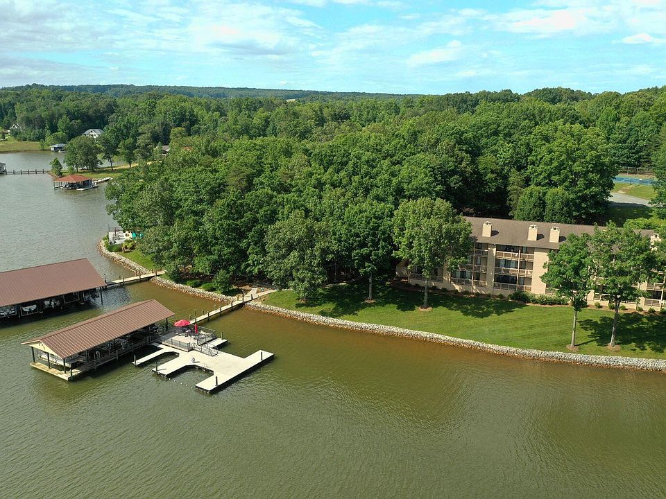 Beautifully updated 2 bedroom, 2 bath waterfront condominium. Gas log fireplace in the living room. Updated kitchen and flooring in 2016. Open floor plan. Big balcony overlooking the water and wooded undeveloped area owned by 4-H Center. POA dues include internet, basic cable, water and propane. Courtesy slips are available for use. Community waterfront swimming pool with amazing sunset views. Launch area for kayaks and kayak storage by the water. Basketball, tennis and pickle ball courts. Boat trailer parking area. Lake Forest private parking lot. Hot water heater replaced in 2015. Exterior ceiling fan added 2021, Parking lot resurfaced 2017. Building painted and tennis courts resurfaced in 2019.