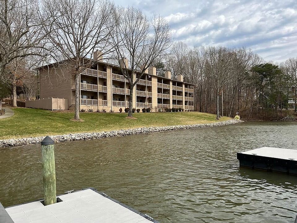 Beautiful wide lake views from this waterfront 2BR/2BA end unit condominium including deeded slip and sea doo lift. (Yes, finally there's a condo available!) Updated flooring, kitchen, bathes. Great condition, ready to move in and enjoy! Gas log fireplace. Open floor plan. Large covered deck across back overlooking the lake with storage. End unit privacy. Walk in level entry. Water in front and wooded undeveloped area to the left. Great location across from 4H Center. Level backyard. Very short walk to the lake and deeded boat slip. Boat slip is located on the end, provides easy access in and out of the lake. Amazing sunsets. Amenities include community waterfront pool, basketball, tennis, pickle ball courts, boat trailer parking, launch and storage for kayaks. Lake Forest is a very