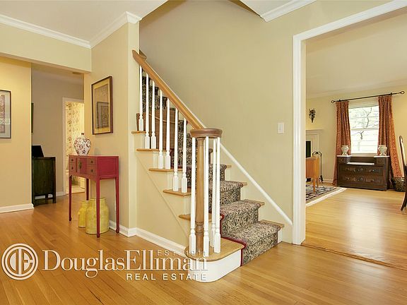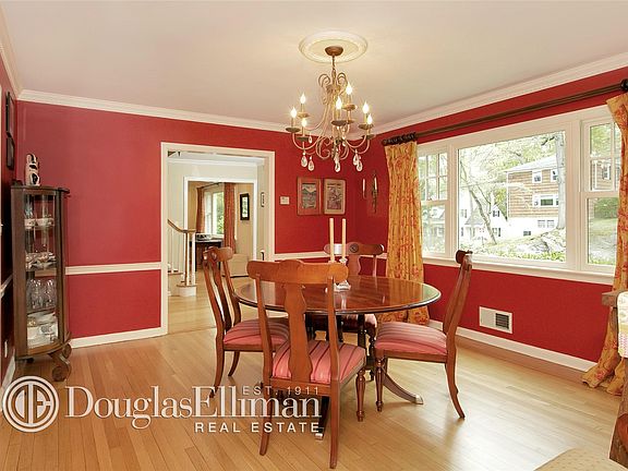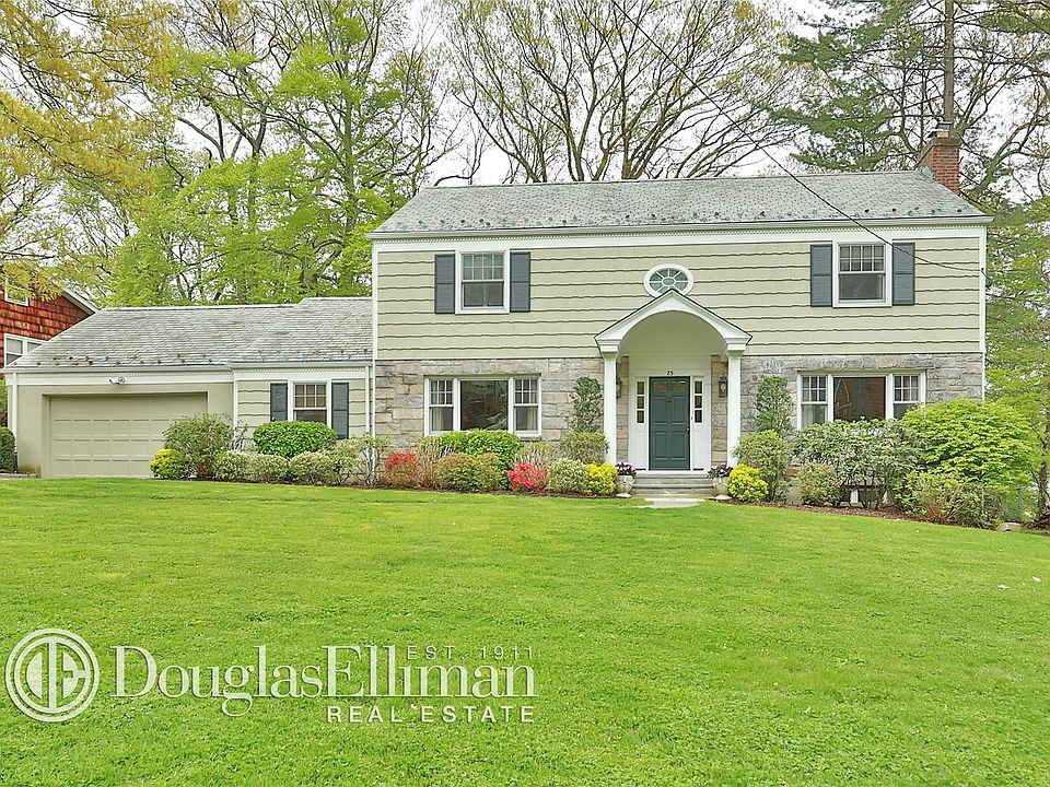 Welcome home! Captivating Colonial in the sought-after Larchmont Woods. Spaciously proportioned center hall layout beautifully appointed with hardwood floors and classic millwork. Handsome front portico and inviting stone and shingle exterior creates a gracious tone that is echoed within. Entry foyer opens to a gracious dining room and elegant living room with fireplace. Modern and sleek eat-in-kitchen with large center island and updated appliances, and sliding glass door to brand new 600-sf bi-level deck with sunken hot tub and perimeter lighting. Adjoining family room highlighted by a vaulted sky-lit ceiling, walls of windows, sliding glass doors to the patio and backyard. Den and powder room complete main level. The generous master bedroom and master bath on the second floor, along with two additional bedrooms and updated hall bath. Another 1000-sf provided on the lower level encompassing a recreation room with door to the yard, office, fourth bedroom, full bath, and laundry closet. Desirable location just one mile to Larchmont Metro-North train station, schools shops, restaurants and parks.