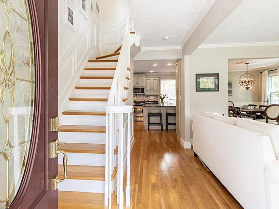 Stunning Turnkey Colonial in Great Melrose location. Nothing to do but move in! Elegantly renovated & well maintained home with hardwood flooring & central air. Open, sunny floor plan offers great space for entertaining. Formal living & dining rooms open to stylish kitchen boasting center island, custom cabinetry with granite countertops, tiled back splash & stainless steel appliances. Cathedral ceiling family room off the kitchen with skylights & access to fenced in backyard. Three bedrooms on second floor & full bath. Third floor offers fourth bedroom or office/playroom area. Sweet outdoor spaces include a farmers porch & beautifully manicured, private backyard with pavers, plantings, inground lighting & irrigation. Newer roof & high end energy efficient Pella windows. Enjoy downtown Melrose shops & restaurants less than a mile away! Close to Fells Reservation & Stone Zoo. Only 1/2 mile to Wyoming Station commuter rail. Easy access to Orange Line & highways & a short drive to Boston!