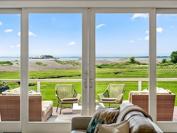 Stunning 5 bedroom 4 bathroom contemporary style home abutting Goldthwait Reservation, with mesmerizing water views! Built in 2009, with 5512 SF of living space, this open concept home sprawls over three levels. The main level includes the living room/dining room with neutral tones, high ceilings, fireplace, and a wall of windows highlighting the ocean views and nature at its finest. The chef’s kitchen is pristine with oversized island, breakfast bar, and butlers pantry, all opening up to the oversized composite deck ideal for entertaining large groups! Don’t miss the cozy family room, and full bathroom. The upper level features four large bedroom options and two full spa-like bathrooms. The lower level is amazing, with mudroom, 5th bedroom and full bathroom, exercise room, and 2+ car garage. Wedged between Devereaux and Riverhead beach this home is perfect for those who love the outdoors- the beach, boating, fishing, kayaking, and paddleboarding, are just outside your door.