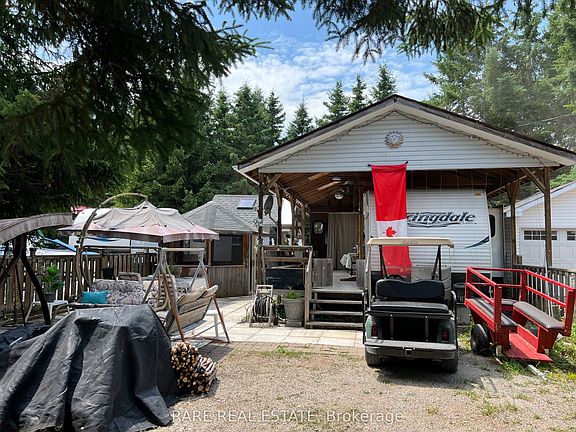 Welcome to Bells Maple Park Campground, family owned and operated. Minutes to Wasaga Beach, easy access to local shopping, Blue Mountains and Collingwood. Backing onto and facing the park, lots of privacy and green space. 2014 - 28 ft trailer with, stove, fridge, built in microwave, AC, sleeps 8-10 people. Octagonal shape muskoka room with mosquito screen and bar. BBQ area with seats. Additional covered bar that seats 6-8 people. Full washroom with sink, cabinet, toilet and tub and shower. Kitchen with electricity and water. Land lease fee includes: AC, water, sewer and electricity. Electric Furnace with thermostat. 2 additional sheds for storage and golf cart. The season is from Victoria Day Long weekend to Thanksgiving Weekend. Golf Cart 2008 - negotiable. Don't miss out on this unique opportunity, book your private tour today!