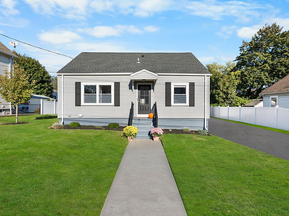 Classic characterStunning updated cape-style residenceBeautiful bay windowSpacious primary bedroomConvenient half bathInviting bedroomsSleek stainless steel appliances