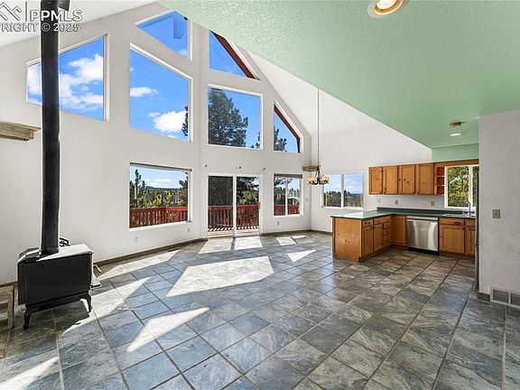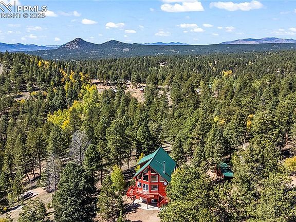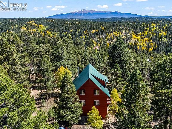 Experience a beautiful mountain retreat with breathtaking views of Pikes Peak and the Sangre de Cristo Mountains! This home, built in 1996, sits on a spacious 4.28 acres, a treed lot at the end of a quiet cul-de-sac, in the peaceful Florissant area. Offering privacy, elbow room, and abundant wildlife, this property is perfect for those seeking serene country living with modern comforts. Inside, the open, light-filled floor plan features cozy touches like a wood stove, honey-pine cabinetry, and barnwood accents that create a warm, rustic ambiance. The loft-style master bedroom includes a sitting area with full mountain views, while the main level offers a spacious kitchen, dining, and living area that opens to a large deck, perfect for outdoor entertaining and enjoying Colorado’s fresh air. The lower level provides flexible space for work, play, or storage, including a potential home office or gym. Horses are allowed on the property, and there’s ample parking with a one-car attached garage, a detached carport, and a circular driveway for RVs or boats. Water is zoned exclusively for residential and human use, ensuring sustainability for your home. This is a rare opportunity to own a peaceful mountain property with stunning views, plenty of space, and endless possibilities for making it your own.