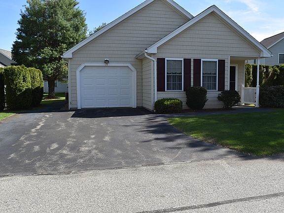 EAGLES LANDING-A 55+ ACTIVE ADULT COMMUNITY! Adjacent to Tewksbury Country Club set along a beautifully manicured 9 hole golf course. Great Ranch Style condominium with 1 car garage and an open concept floor plan, featuring a living/dining area and kitchen with breakfast bar. Fully applianced kitchen features gas stove/oven, trash compactor, dishwasher and garbage disposal. Master and guest bedrooms both with cathedral ceilings, double wide closets and wall to wall carpet. Tile flooring in kitchen, hallway and bathroom. Features include full size laundry closet, security alarm system, central A/C, central vacuum, gas heat and hot water. Full glass slider opens to private patio area. Carefree lifestyle within minutes to shopping, restaurants, highway access, and commuter rail. Clubhouse and indoor heated pool/spa for your enjoyment. Don't miss out on this great SINGLE LEVEL, DETACHED home!