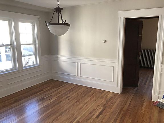 Available now. Spacious, dog-friendly, two bedroom apartment, on the second floor of a two family home. The entire unit is flooded with light and has hardwood floors throughout. The living room features beautiful woodwork, a working fireplace and a ceiling fan. Go though the french doors to your sun-filled bonus room/office. There is a separate dining room with wainscoting and a new light fixture. The eat-in kitchen has an abundance of cabinets and counter space, along with new granite counters. Appliances include gas cooking, a dishwasher and a disposal. Both bedrooms are equal in size and could fit a king size bed. The bathroom has just finished a gut renovation along with most of the rooms being entirely painted. There is parking for 2-3 cars, tandem, in the driveway. There is also detached garage where you could park in as well or use as a work/play space. The backyard is shared between both units. There is designated storage and laundry (not shared) in the basement.
