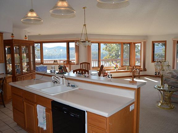 Looking for your Forever home? This is it! Spectacular Lake and mountain Views from every room in the house. Open Kitchen with huge pantry, dining and living room with cathedral ceilings and beautiful stone fireplace. Main level includes 2 master suites with large walk in closets. Walk out lower level has family room with second kitchen, 3rd master suite with cedar lined walk in closet, storage and workshop/2 car garage. This could be your private personal oasis. You will love every detail including the beautiful treed lined asphalt driveway and main level 2 car garage with covered porch entry. 10 X 24 Boat slip available for additional $$