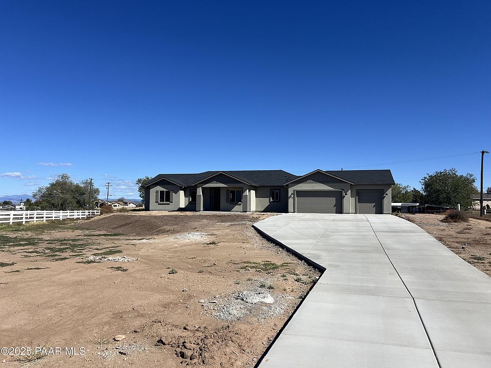 Welcome to this exceptional new build located in the highly desirable Mollie Rae subdivision. Perfectly situated on a spacious 1-acre lot with breathtaking Granite Mountain views, this beautifully crafted home offers 4 bedrooms, 3 baths, and 2,179 sq. ft. of thoughtfully designed living space.The open-concept floor plan showcases elegant tile flooring in the main living areas, plush carpeting in the bedrooms, and a cozy fireplace that adds warmth and charm. The modern island kitchen features quartz countertops, stainless steel appliances, and ample cabinetry -- perfect for entertaining or everyday living.This home includes a secondary suite with its own private bath, ideal for guests or multi-generational living.The oversized 3-car garage offers epoxy floors, providing plenty of space for projects and storage. Step outside to a large covered back patio overlooking the scenic yard. Front and rear landscaping are in progress -- or ask about a landscape credit to customize it your way.Enjoy the peaceful setting of a community lined with classic white vinyl fencing and room for your RV. This home is nearly complete and waiting for you to make it your own.Come see why Mollie Rae is one of Prescott's most sought-after neighborhoods -- your dream home is almost ready!