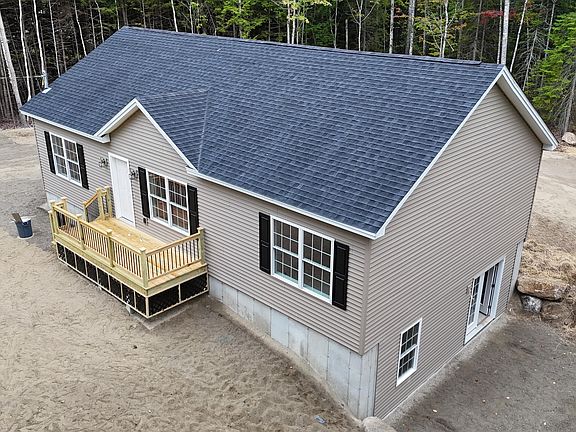 New build just completed September 2025. 3 bdrm two bath with full walkout basement that can be finished off into more space. Private lot with the power line on one side for easy access to trails, development is just under 5 miles from downtown Ellsworth. Large open kitche/living area with private dec off back and small entrance decks. Room to build a connected or detached garage