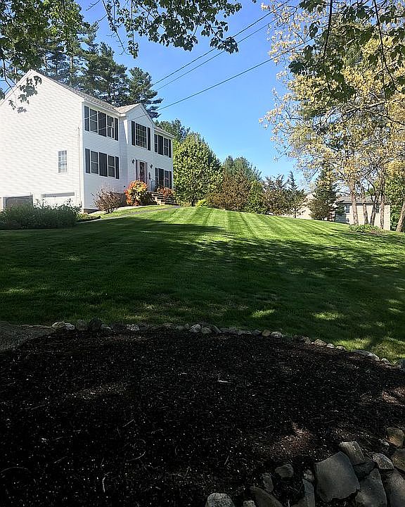 "Must See" Well maintained 3 bedroom Colonial situated on a beautiful landscaped lot and close to the Mass border. This stunning home features kitchen island, dinette, formal dining room, living room, 1/2 bath with laundry and hardwood flooring on first floor. Ceramic tile in bathrooms and wall to wall carpeting in bedrooms. Slider from dinette goes to large deck and private backyard. 12x16 Reeds Ferry Shed, 2 car garage under. Fully applianced and home warranty.